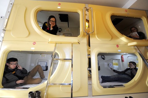 Poniżej zdjęcie wnętrzna jednego z hoteli kapsułowych w Japonii :